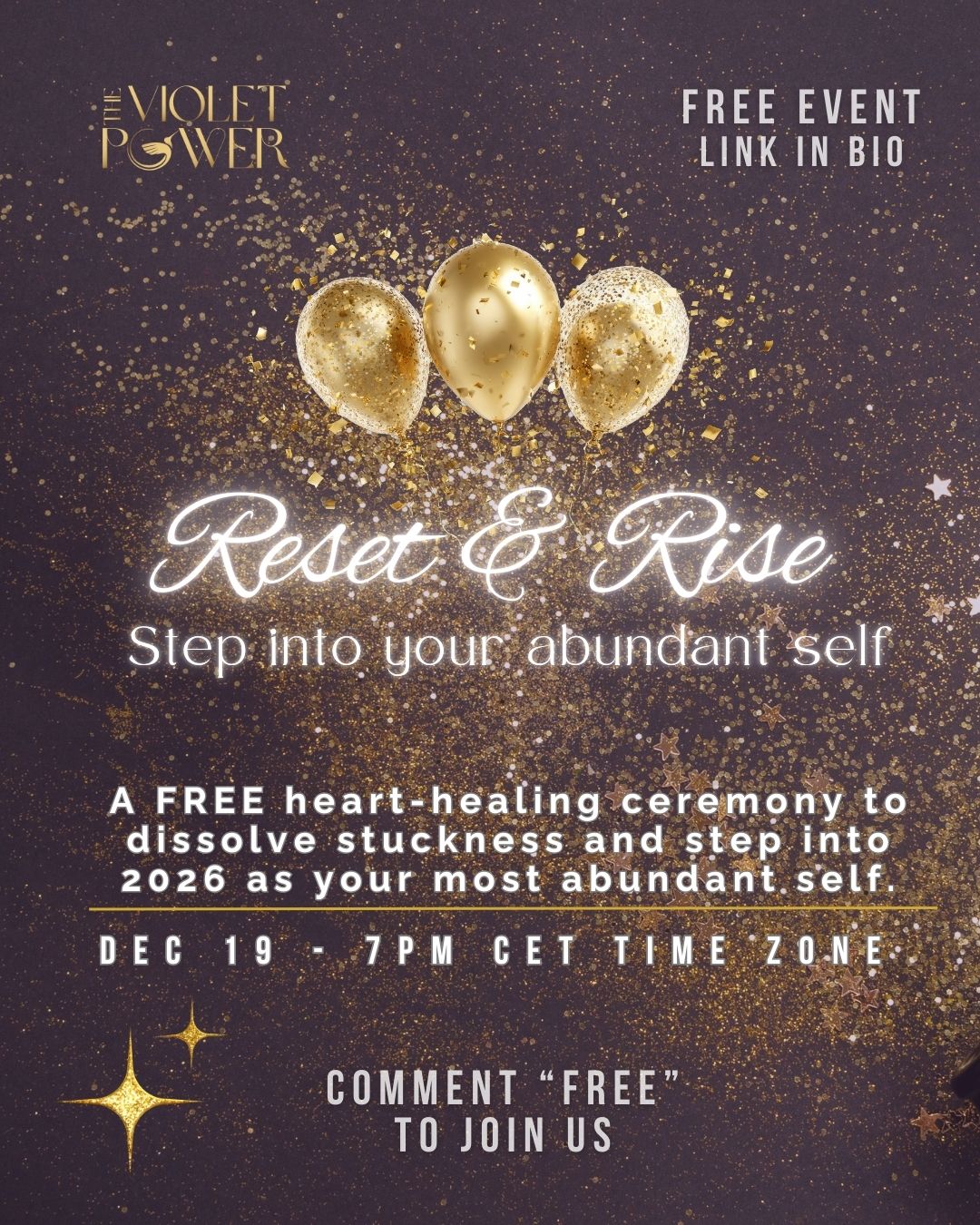 This is what you will receive inside this FREE Reset & Rise ceremony. Together we will gently dissolve the stuckness and emotional residue of 2025, close old cycles with gratitude, and guide you back into your heart so you can anchor deep worthiness, self-trust and alignment. You will be held in a powerful field of healing and remembrance, so you can step into 2026 as your most abundant, open-hearted, authentic self.