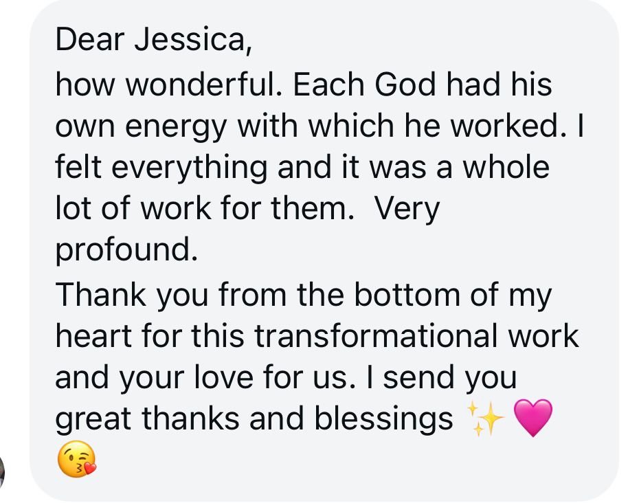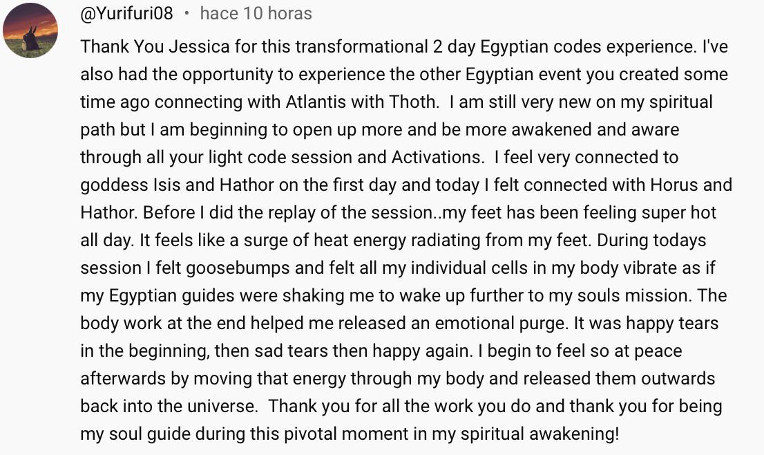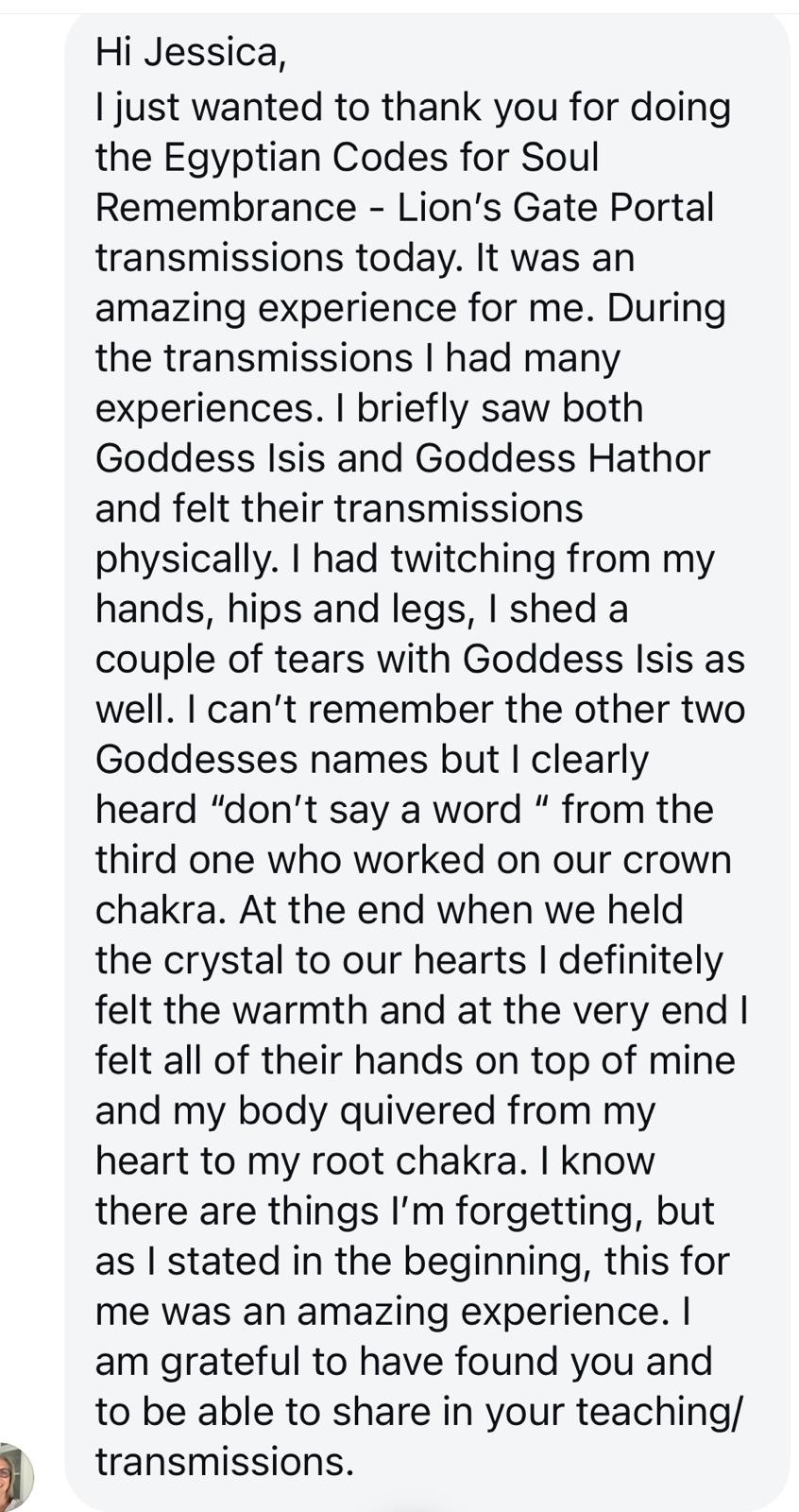 "Jessica, WOW. I am truly in awe of what unfolded during the Egyptian codes session today.