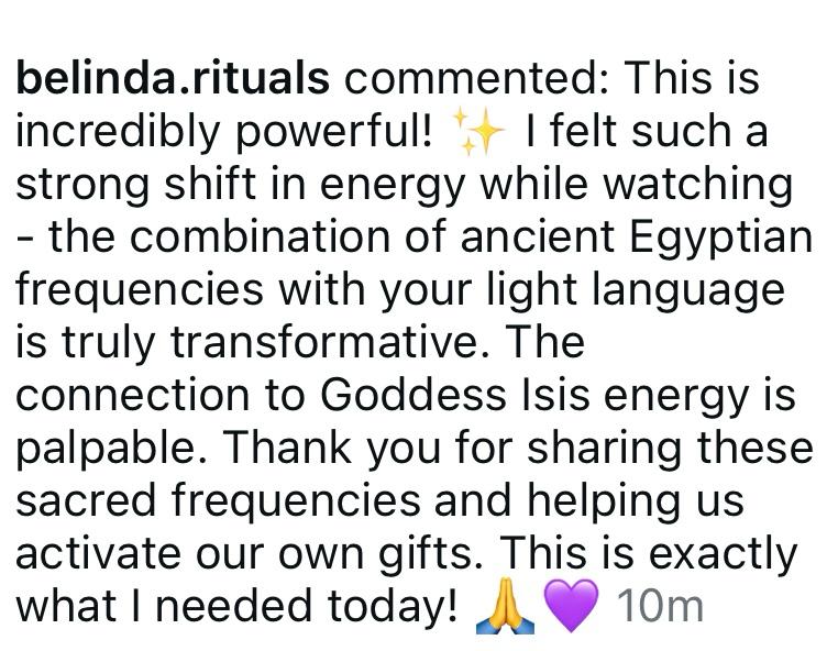 Together, we’ll work with Sacred Ancient Egyptian Frequencies like Goddess Isis, Hathor and Sekhmet to help you reconnect with your ancient wisdom, awaken your voice, and open the channels where your gifts want to move.