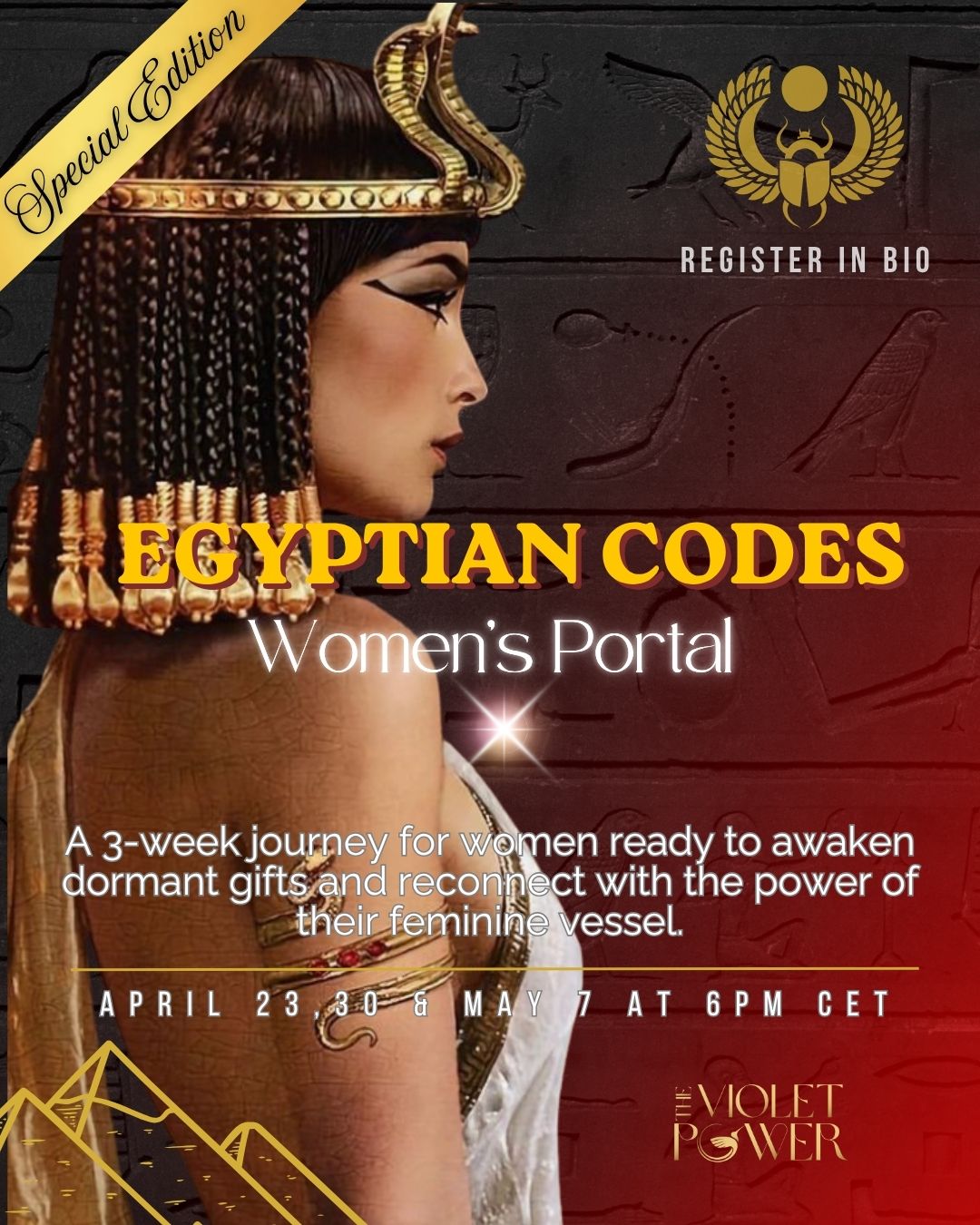 Egyptian Codes: Women's Portal is a powerful 3-week live journey to help you clear blocks in the womb, heart and throat so you can reconnect with the power of your feminine vessel and awaken your dormant gifts with more ease.
